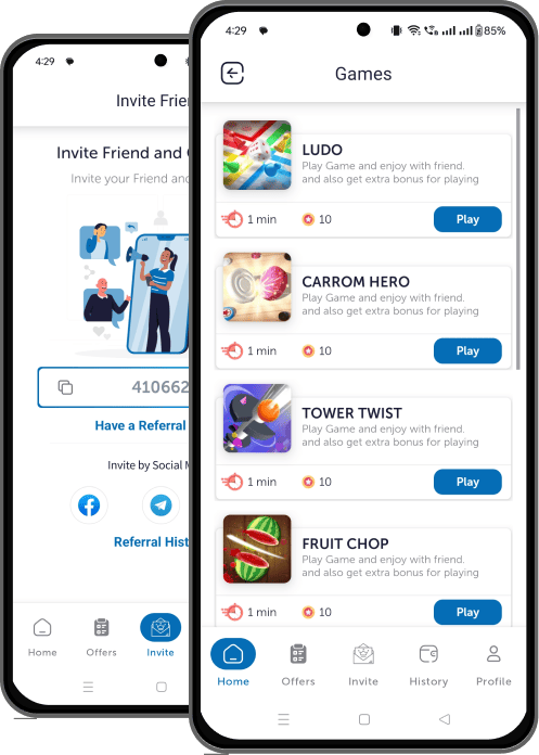 Play daily games and earn coins. also invite your friend you will get invite bonus when your friend submit his first redeems